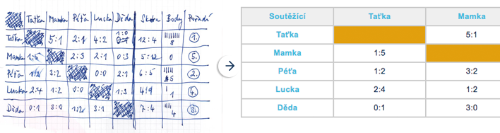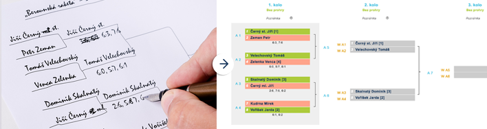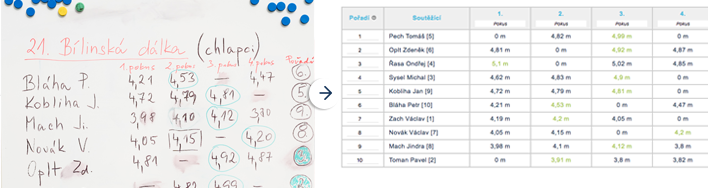 Vkládání výsledků pořadatelem, ale i účastníky nebo rozhodčími.